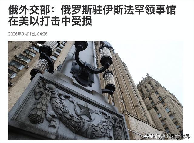 昨天,俄罗斯驻伊朗伊斯法罕总领馆在美国和以色列的联合空袭里面受损,数名工作人员被冲击波震倒,所幸无人死亡或重伤。