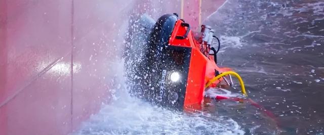 远洋巨轮在海里泡久了,船底会长满海藻和藤壶等海洋生物附着物,增加油耗,降低航速。以往全靠“蛙人”潜水员,在低能见度、高水压的海面下,用高压水枪喷或铲子刮。效率低,还随时都有被暗流卷走、被巨轮挤压的风险。上海泊展科技做出了一种“壁虎”那样的机器人,能稳稳吸附在几十万吨的巨轮底下,用高压气泡爆炸产生的“空化射流”冲掉附着物。