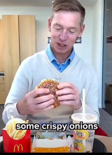 事件的起因很简单:近日,为了推广麦当劳史上尺寸最大的新品“大拱门”汉堡,这位CEO在个人社交平台发布了一段试吃视频。