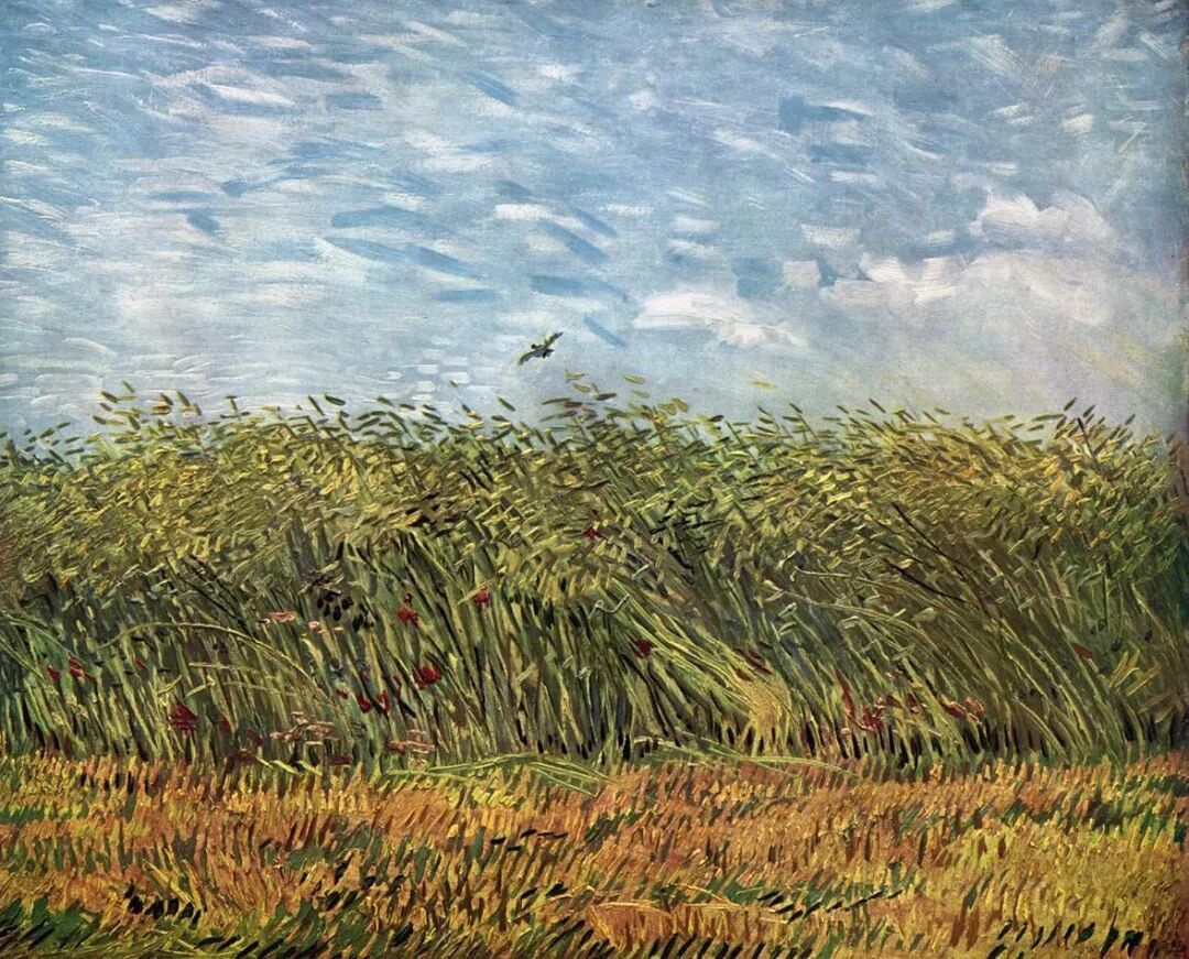 其实类似的操作我们在文森特·凡·高身上也能看到,他在巴黎时期创作的风景画《有云雀的麦田》,同样放弃了传统宏大叙事的视角,已然把观察者的位置拉低到一只田鼠的高度。